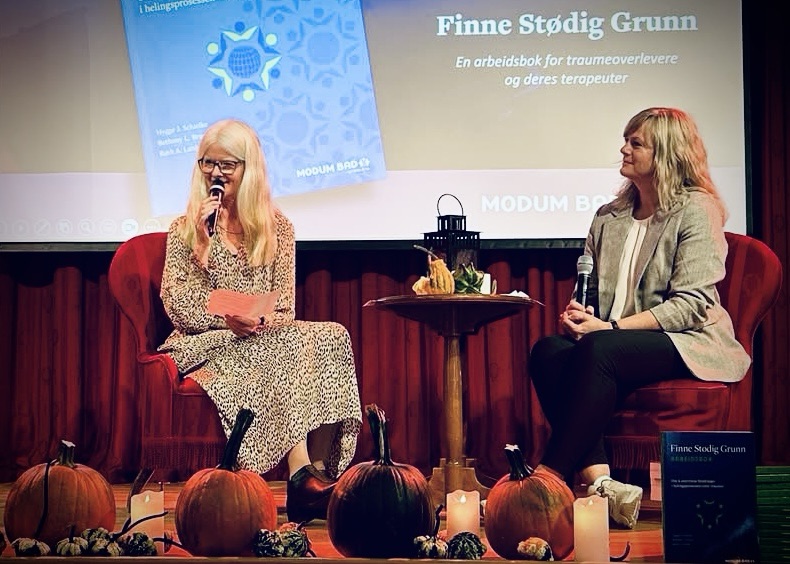 På scenen ble Ph.D. Ellen K.K. Jepsen, psykiater ved traumeavdelingen i over 20 år, intervjuet. Hun har ledet arbeidet med Finding Solid Ground på avdelingen og den norske oversettelsen Finne Stødig Grunn.