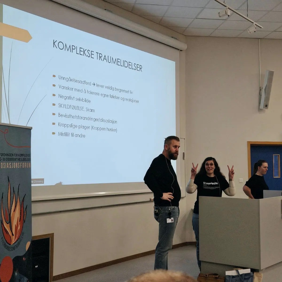 Dette gjorde jeg gjennom å fortelle om min egen erfaring. Men jeg er ganske trygg på at min historie ikke er unik, at flere vil kunne kjenne seg igjen i den. Jeg snakket om hvordan det er å bli feildiagnostisert og møtt med både tvang, avvisning og atferdsregulering fordi vi ofte hverken blir trodd, tålt eller forstått. Men like viktig som å fortelle om når systemet svikter er det å vise til hva som faktisk hjelper. Dette forsøkte jeg å si noe om etter beste evne. Jeg la vekt på tid og relasjon, samt viktigheten av å få et språk og mer kunnskap om dissosiasjon. Videre formidlet jeg om behovet for støtte til å nærme seg innsiden og at de ulike delene blir møtt med det de kommer med. Jeg delte også noe om min indre verden for å kunne gi et bilde på hvordan det oppleves å ha en dissosiativ lidelse. Jeg illustrerte det gjennom en indre kaotisk «barnevernsinstitusjon». Til slutt fortalte jeg noe om hvordan det er å leve med dissosiativ identitetslidelse (DID), nå som jeg har kommet langt i min bedringsprosess. Det er fortsatt en krevende øvelse med skam, tvil og indre konflikter, men jeg lever – ikke bare eksisterer. Og selvfølgelig fortalte jeg om det unike og verdifulle fellesskapet på Dissosiasjonsforum.