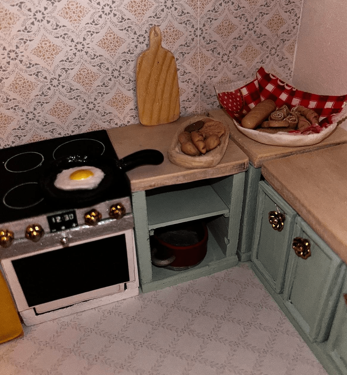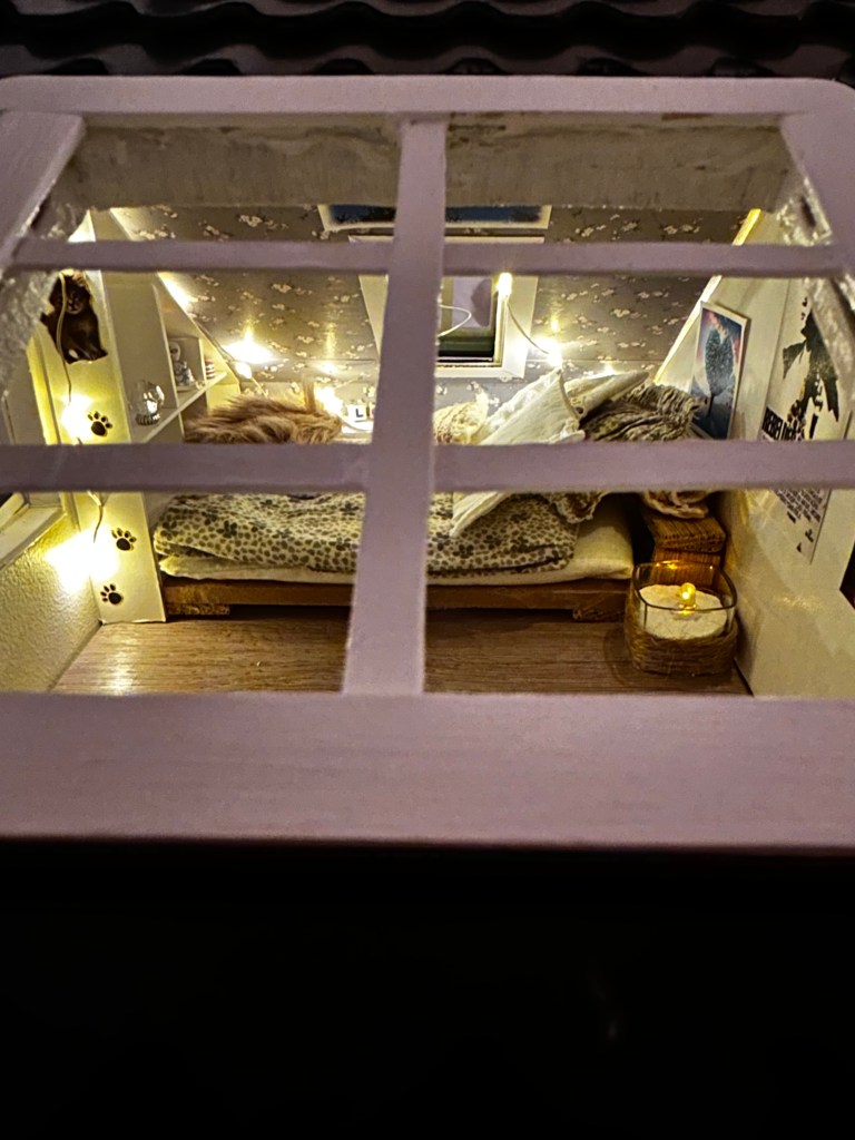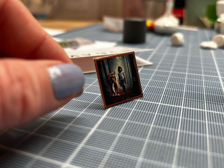 Sjekk ut min instagramkonto:diy_safe_place for mer informasjon. Der beskriver jeg fremgangsmåte og materialene jeg bruker. Jeg vinkler det mer som et generelt hobbyprosjekt. Følg og lik gjerne, og ikke nøl med å spørre hvis du lurer på hvordan du lager et miniatyrbilde eller en gulvlykt i skala 1:12 – ha ha!