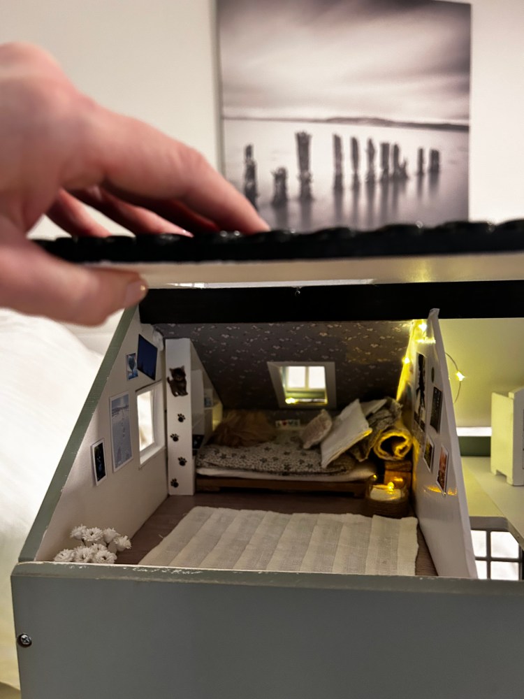 Å lage et helt konkret, fysisk sted som jeg kan ta og føle på – i litt overført betydning, gjennom å lage et «hemmelig» rom i et ellers vanlig dukkehus. Som barn skulle jeg kanskje ønsket at det fantes et slikt hemmelig sted på ekte.