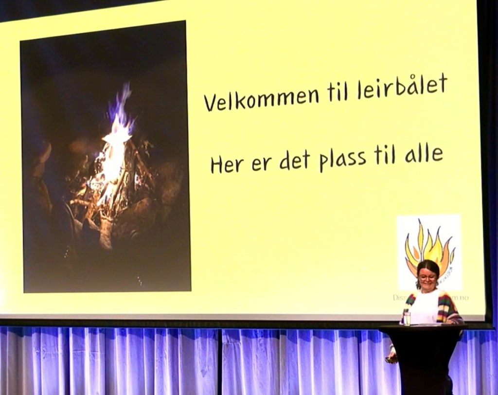 Jeg åpnet med å invitere alle til å sitte rundt «leirbålet» sammen med meg. Jeg belyste utfordringer vi møter i hjelpeapparatet og betydningen av å bli trodd, tålt og forstått, samt hva riktig behandling betyr for mulighetene til å skape oss gode liv.