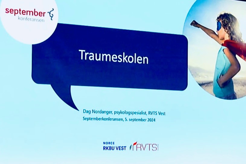 Dag Nordanger, psykologspesialist i RVTS Vest, presenterte den nye Traumeskolen utarbeidet av RKBU Vest (Regionalt Kompetansesenter for Barn og Unge) og RVTS Vest (Regionalt senter for Vold og Traumatisk Stress). Traumeskolen er et gratis digitalt og interaktivt kurs om barns utvikling og traumer. Kurset er rettet mot de som møter barn i deres daglige liv i de ulike tjenestene som retter seg mot barn. Vi fikk se flere videoklipp fra kurset og kurset fremstår som lett og morsomt, samtidig som det er veldig lærerikt. Kurset lanseres høsten 2024 på RVTS Vest sin hjemmeside.