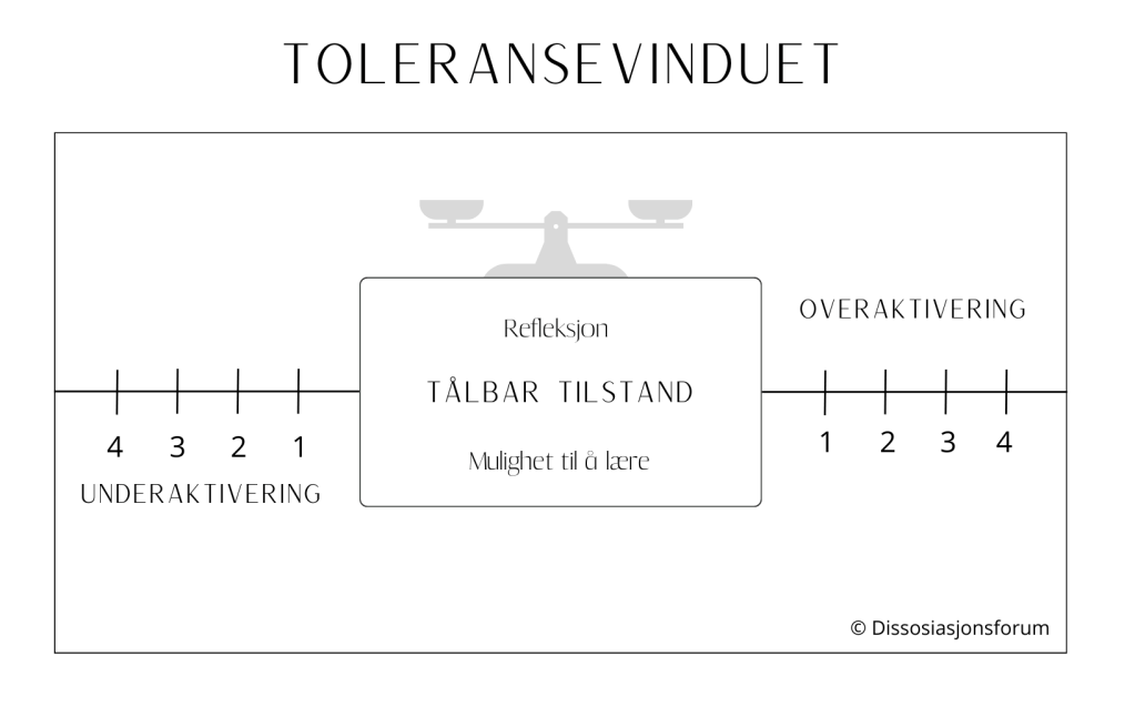 | Tålbar tilstand | Tilstand hvor man befinner seg inni toleransevinduet og evner å tenke, reflektere, romme følelser og lære seg nye ting. |
