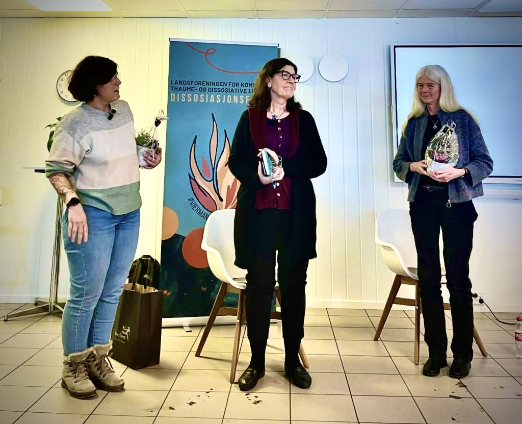 I tillegg fikk vi høre vår egen May Bente Hagen fortelle om sin erfaring med programmet. Hun deltok i Topp DD-studien som ledet til det originale programmet Finding Solid Ground (Brand, Lanius, Schelke). Hun har også vært en betydelig bidragsyter i arbeidet med den norske oversettelsen.